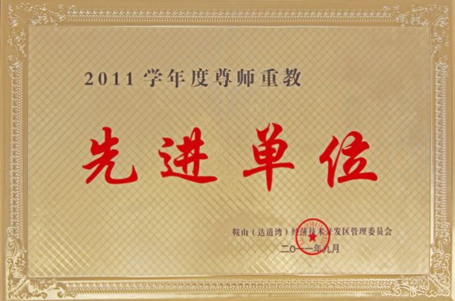 2011年9月,公司被鞍山(達道灣)經(jīng)濟技術(shù)開發(fā)區(qū)管理委員會授予“2011學年度尊師重教先進單位”。